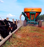 Mistura, transporte e distribuição direta no cocho com tubo de descarga hidráulico, reduzindo tempo, mão de obra e retrabalho.