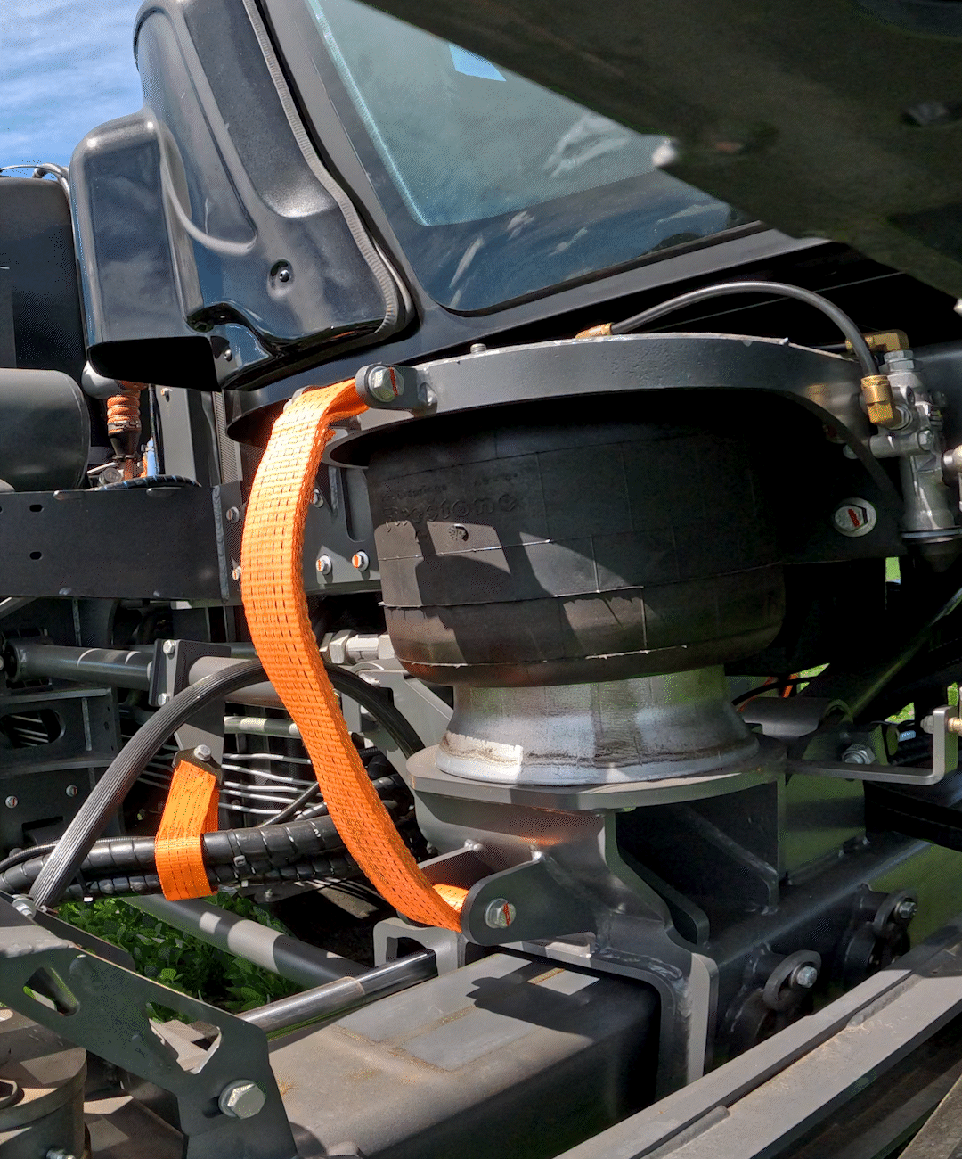 Sistema HYDRO com controle eletrônico de tração, bomba e motores de roda Danfoss H1 sensorizados e redutores Bonfiglioli Heavy Duty, garantindo distribuição automática de torque, menos patinagem e máxima tração em qualquer terreno.